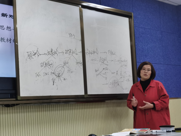 海陵中学历史教研组长仲小红老师作了《新教材、新变化、新对策》的专题讲座。仲老师从“教材设计特点的变化”“ 教材呈现方式的变化”“ 教材内容方面的变化”三个方面对新教材进行了解读,加深了与会教师对统编教材的理解和运用。