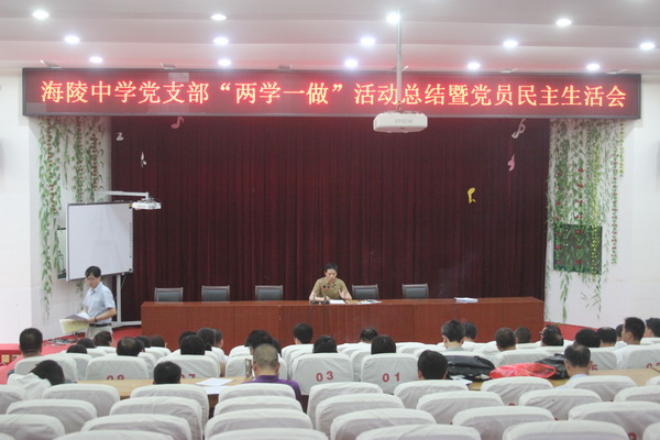 2017年6月30日下午,海陵中学党支部进行了本学期“两学一做”活动总结,并举行党员民主生活会。