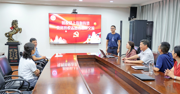 接下来年轻党员颜小丽、夏永进老师分享了暑期深入社区做抗疫志愿者的经历,用自己的实际行动证明了党员的力量。