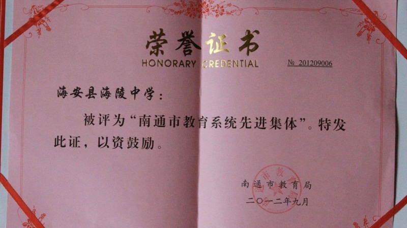 一股好精神成就一个好成绩,连续多年中考成绩名列南通市规模学校第一;学校先后获得全国养成教育实验学校、江苏省最具影响力初中、江苏省平安校园、江苏省绿色学校、江苏省文化建设特色学校、江苏省健康促进金牌学校、南通市文明单位、南通市教育系统先进集体、南通市青少年行为规范示范学校、南通市未成年人道德建设先进集体、南通市依法治校示范校、南通市中小学德育工作研究基地学校、南通市安全管理工作先进集体、海安县廉政文化建设示范点等荣誉。