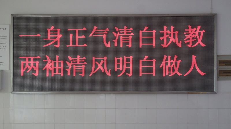位于教学楼一楼南北通道的廉洁法治文化长廊,墙壁上从法的起源、法史、青少年犯罪问题、未成年人保护法、反对邪教、防骗防拐、学法、知法、守法、用法、廉洁守法小故事等以板报形式加以展示;廉洁法治园地,摆放廉洁文化石和孔子训导子路“身正令行”的塑像,形成了风清气正的廉洁氛围,让师生在潜移默化中受到教育。