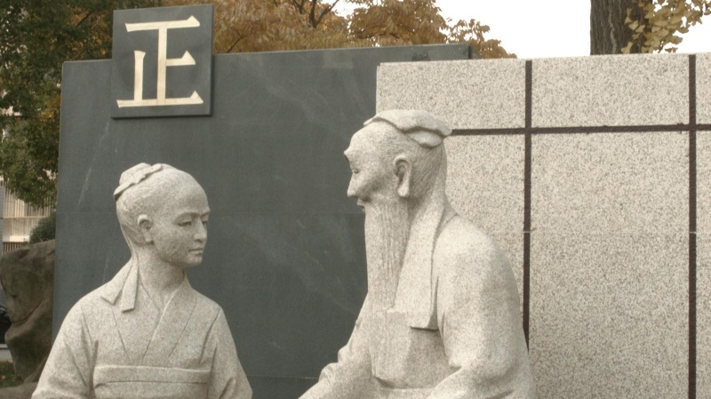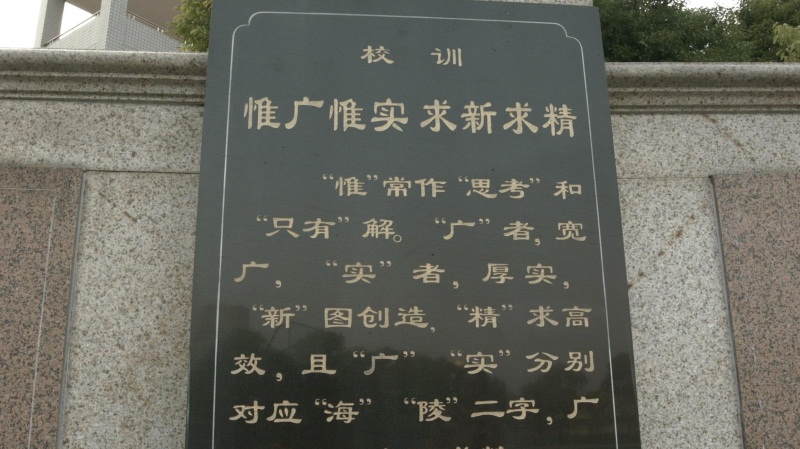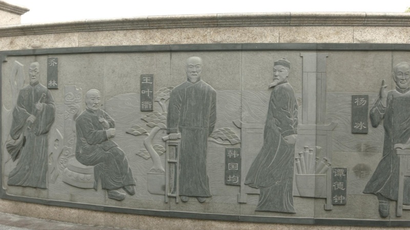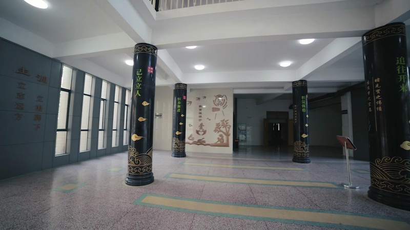 惟实广场的弧形波墙上镌有12位历史名人石像,其中四位是留踪海安的历史名人,八位是海安籍历史文化名人。师生伫立广场,凝视石像,必仰先贤以自厉,感桑梓而承重,惟广惟实,永求精进。