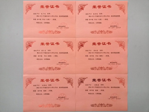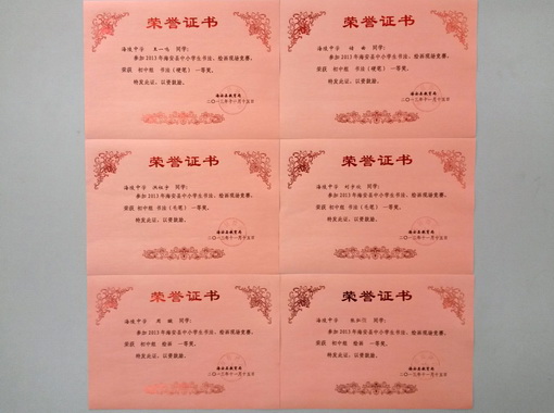 2013年11月9日,县教育局在南屏初中举办了全县中小学生书法、绘画现场竞赛,我校选手再创辉煌。