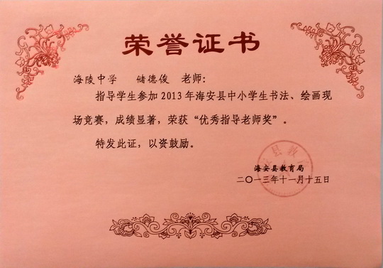 本次比赛中,我校荣获“优秀组织奖”,储德俊老师荣获“优秀指导老师奖”。