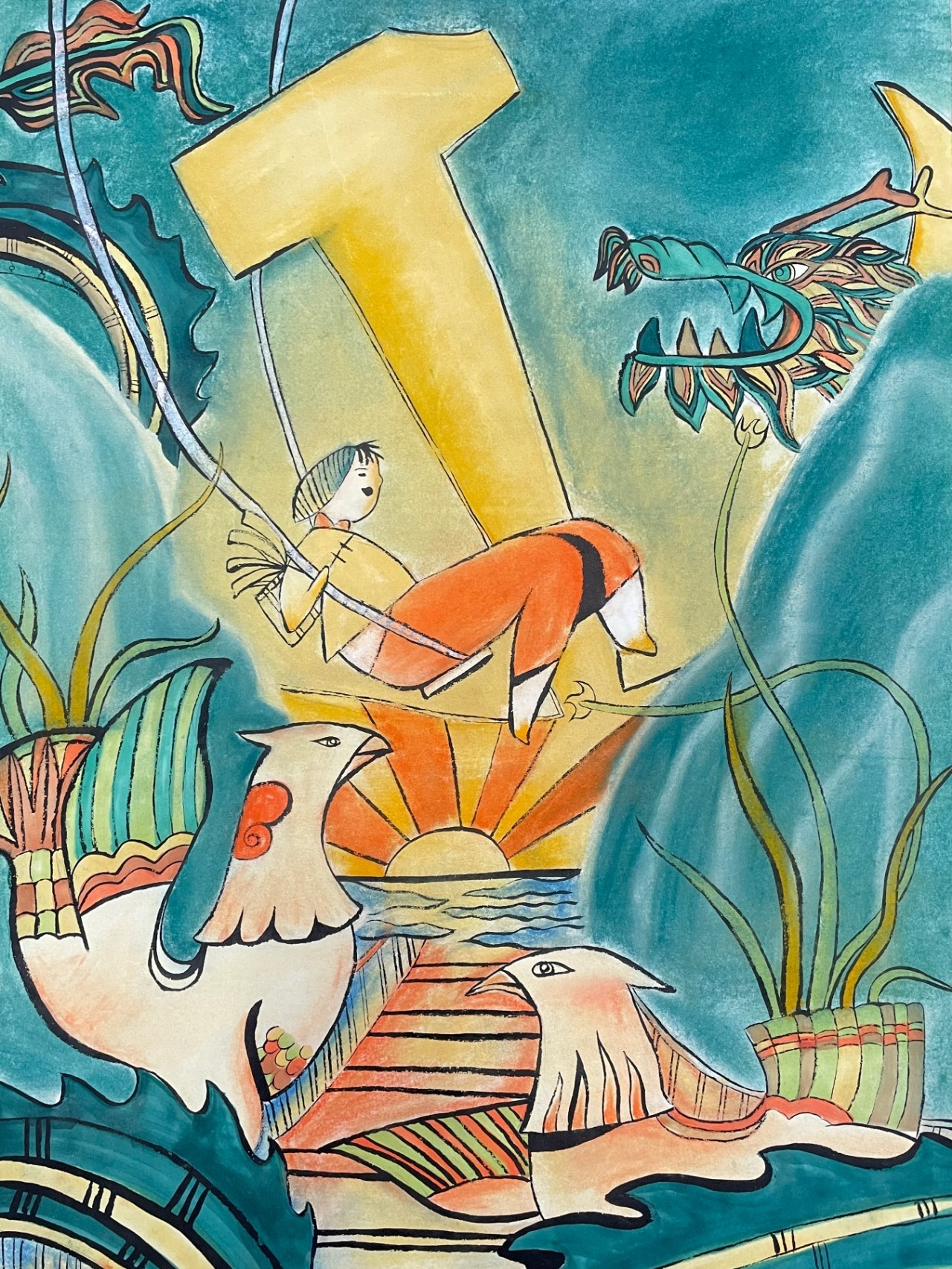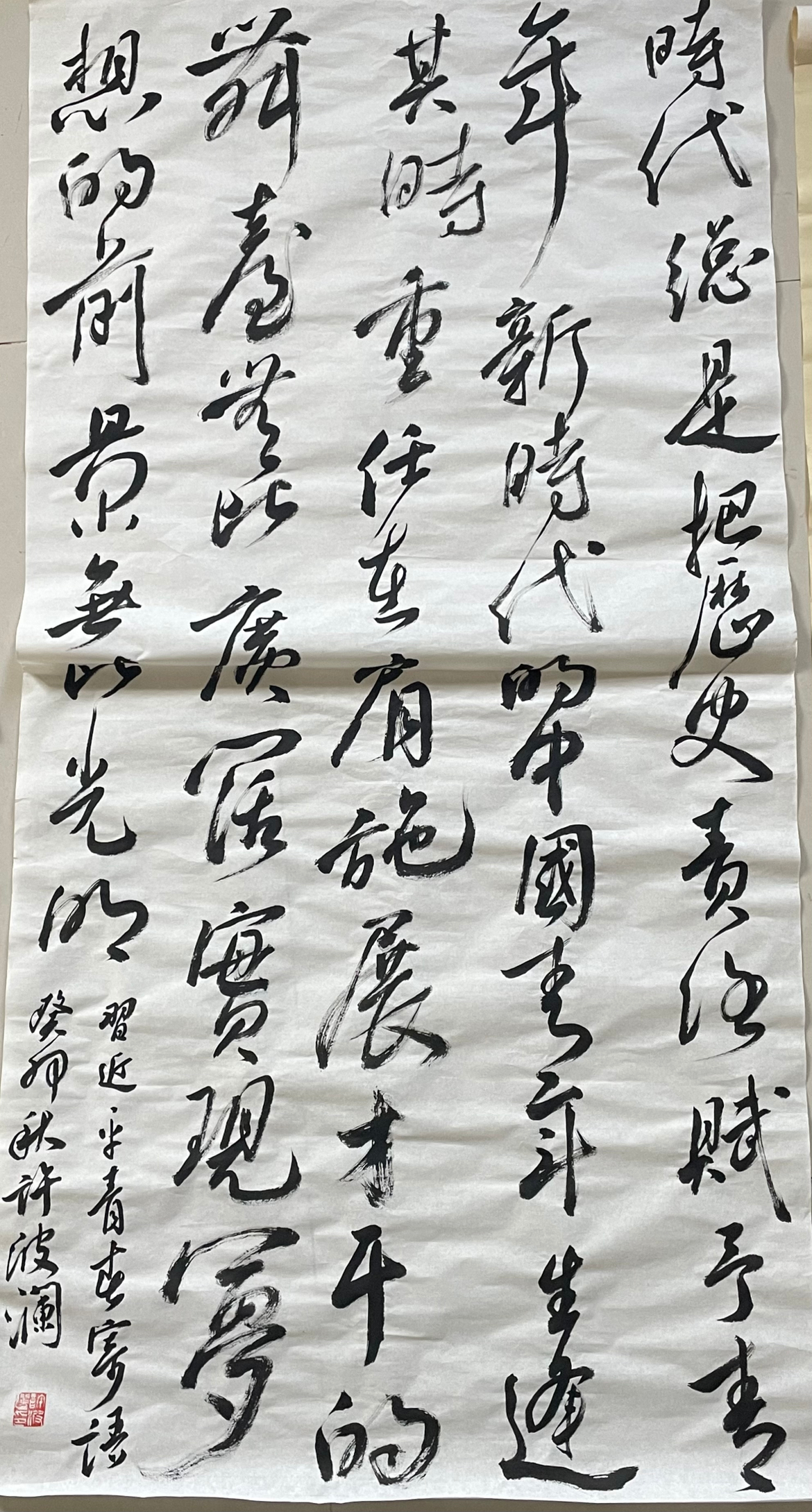 在这些作品中,我们可以看到孩子们对新时代中国特色社会主义伟业的理解与展现。有的作品以书法形式呈现了“国之大者”——挺拔有力的笔锋,展现出少年们书生意气、挥斥方遒,对光明未来势在必得的豪情。有的美术作品则通过细腻的色彩融合,描绘繁荣发展的城市景观,和谐共生的人与自然,展示了新时代中国的现代化面貌和蓬勃生机。