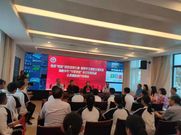 为落实立德树人根本任务,践行五育并举,培养德智体美劳全面发展的社会主义建设者和接班人,9月30日下午,海陵中学组织初一七1、七25班的学生走进雅周农业园,开展了“守望田园”社会实践基地活动,海陵中学副校长徐培宏,安保处主任石锦来,政教处主任陈燃、副主任刘生,年级部主任许喜钿、刘进军,关工委秘书长任吉祥,主任韦来庶、吉祖云等一行九人全程参与了本次活动。