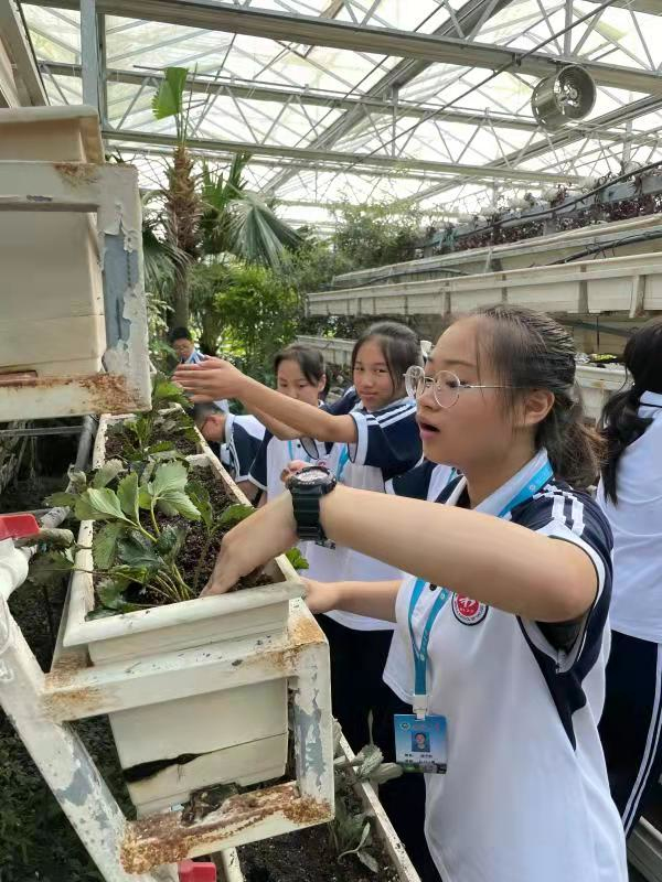 随后,同学们在工作人员的带领下来到了种植区,参观了草莓和小番茄的大棚种植环境。同学们专心地聆听工作人员的讲解,在得知草莓和小番茄都是盆内种植,已实现自动化灌溉时,纷纷发出了惊叹声。同学们在接到小组种植竞赛任务后,迅速小组分工,彼此配合,齐心协力地把优良成熟的种苗,播种到疏松肥沃的土壤里。园区工作人员对栽培表现优秀的同学进行了奖励,手捧碰碰香,看着自己亲手种植的种苗,同学们充分体验到了劳动的乐趣,脸上洋溢着幸福的笑容。