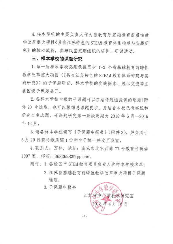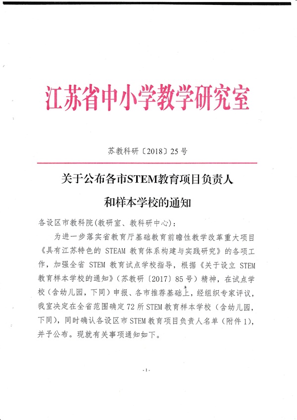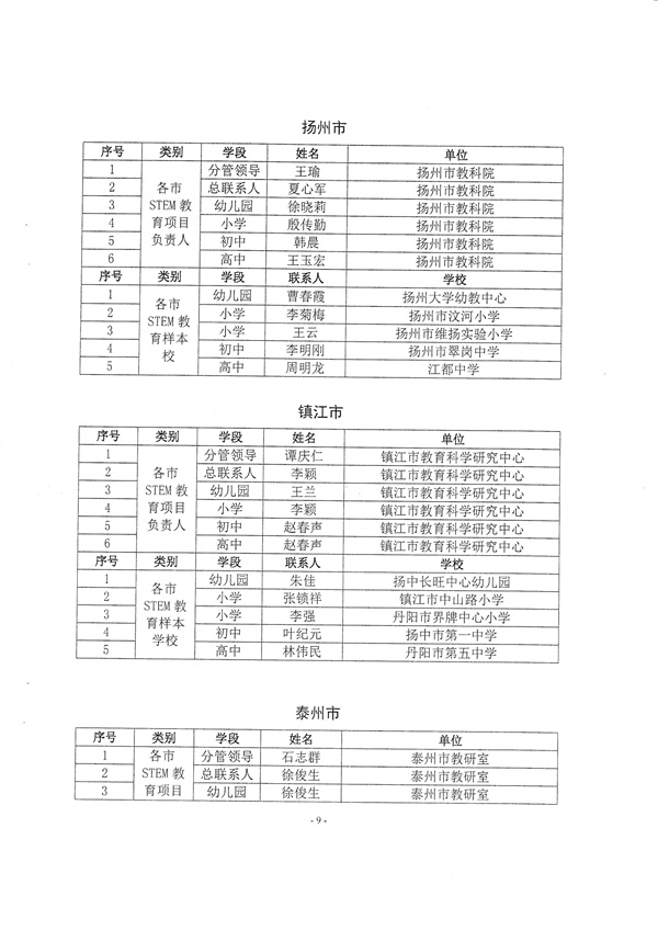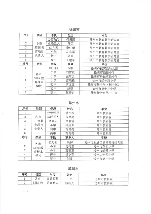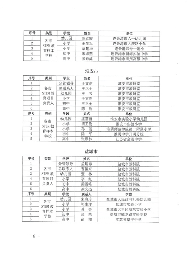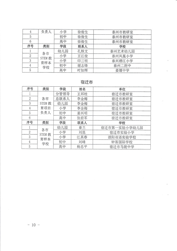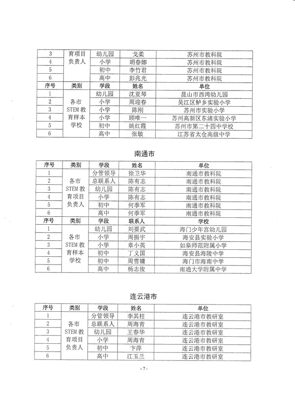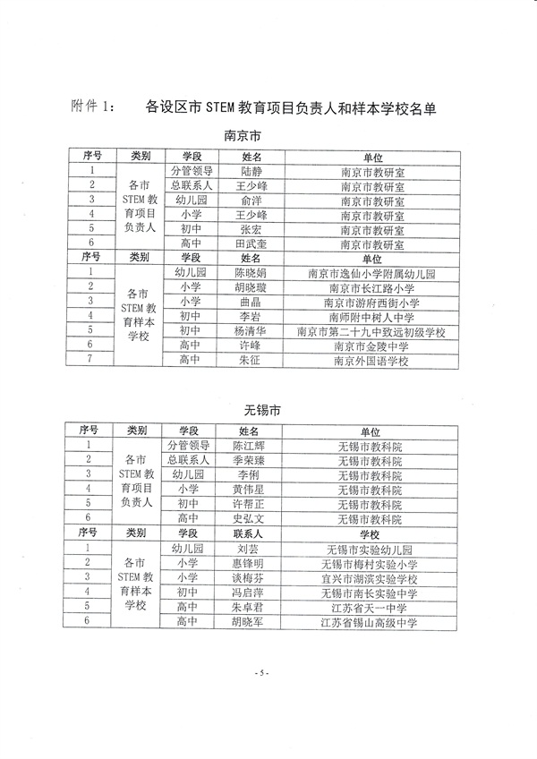 关于公布各市STEM教育项目负责人和样本学校的通知