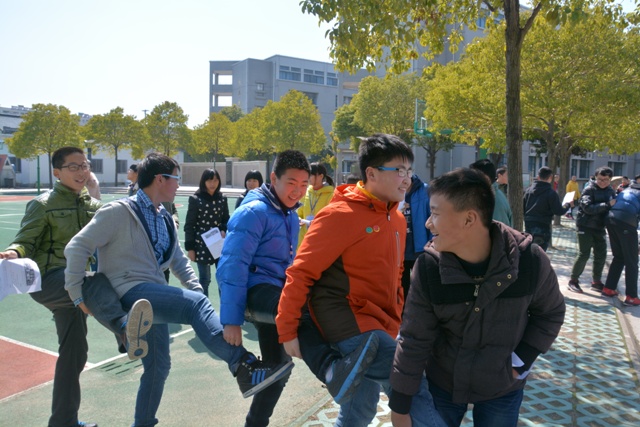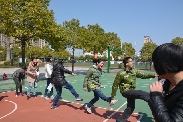 分组完毕,由于刚开始我们还不是很熟,女生笑我们男生都是树桩。可树桩做事从不含糊,我们先商量了一下策略便开始练习,刚开始我们不是一帆风顺,所以大家开始互相埋怨了。幸亏组长安慰大家说:大家不要互相埋怨了,我们多练几次不就行了吗?后来我们慢慢找到了诀窍,最后我们赢了。不过活动关键不在于胜负,而是让大家互相认识,希望以后多举行这种活动。