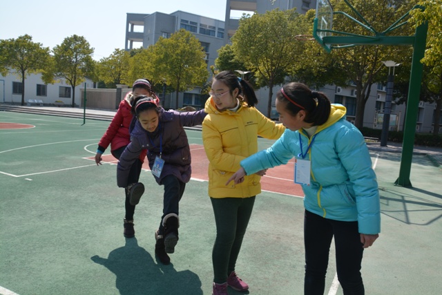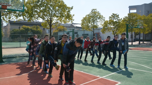 刚分组,大家都有些拘谨。倒是女生比较大方,男生们则你看看我,我看看你,不怎么说话。为了活跃气氛,女生戏称他们为“树桩”。眼看别的组已练得有点模样,我们只得暂且分成男、女组练习。一会儿,男生主动要求一起磨合。大家都熟络起来,互相提建议,终于在游戏中获胜。