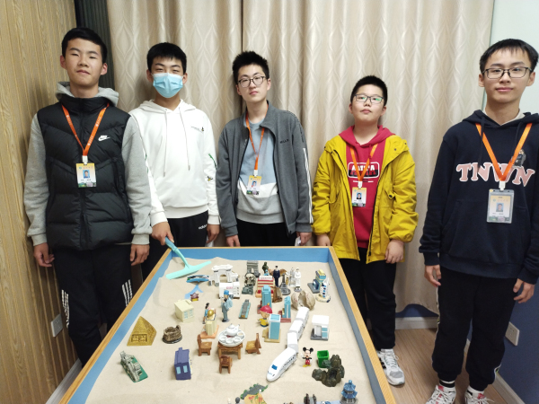 活动开始进行,同学们先通过抽签确定了自己的顺序,并按照抽到的序号依次进行体验。面对琳琅满目的沙具,同学们仔细挑选。沙具作语言,沙盘比纸张,学生们拿着选择好的沙具,一一摆到自己想摆的位置。慢慢地,一个美好的沙世界逐渐呈现在眼前。
