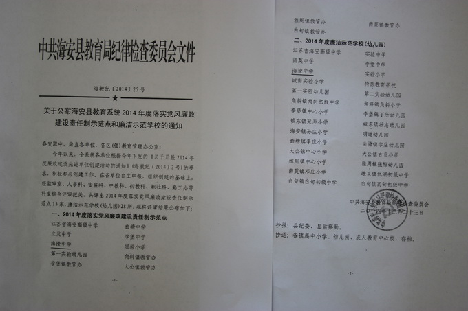 我校荣获2014年度落实党风廉政建设责任制示范点和廉洁示范学校称号