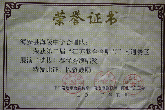 我校在“江苏紫金合唱节”南通赛区展演(选拔)赛上获优秀演唱奖