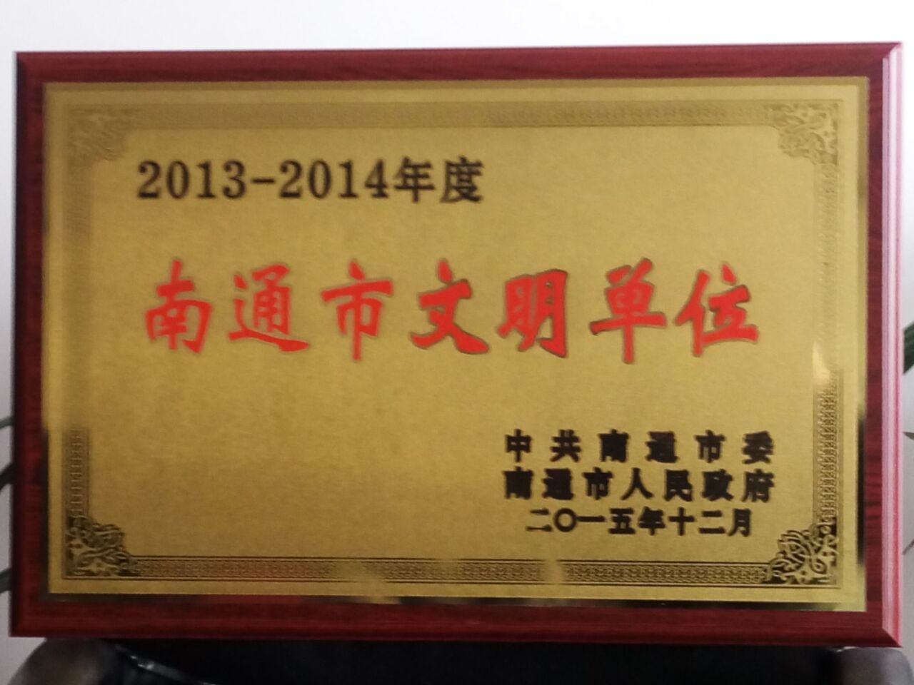 我校获评2013-2014年度南通市文明单位