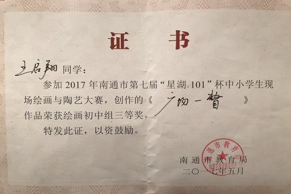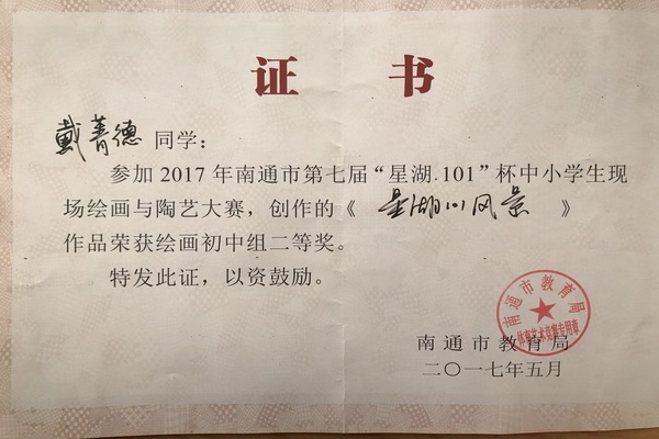海陵中学选手在南通市第七届“星湖·101”杯现场绘画与陶艺大赛中获奖